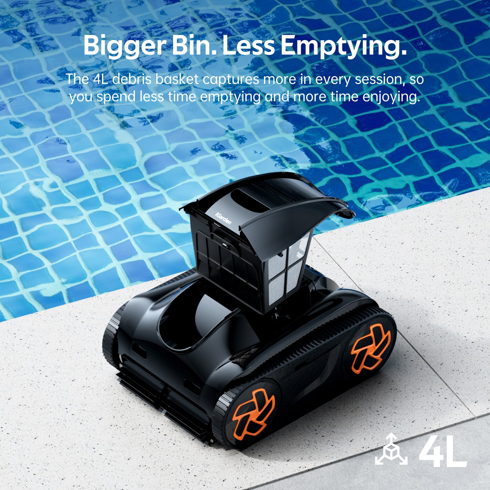 Runs for extended time—clean more, empty less, with a large debris basket.