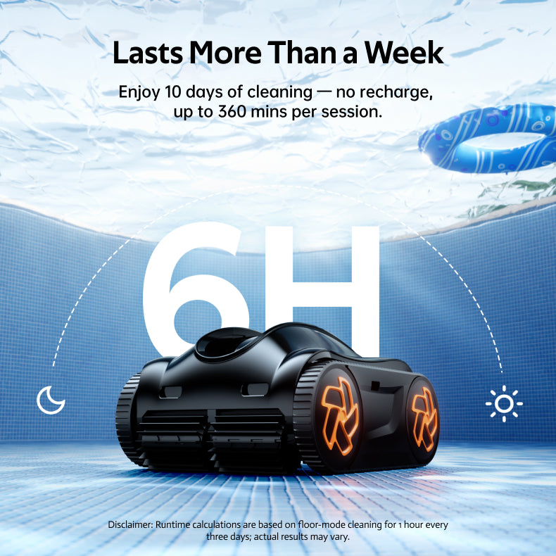 Enjoy 12 days of cleaning一no recharge, up to 480 mins per session.