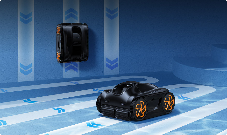 The robotic pool cleaner self-returns when battery is low or cleaning is done.