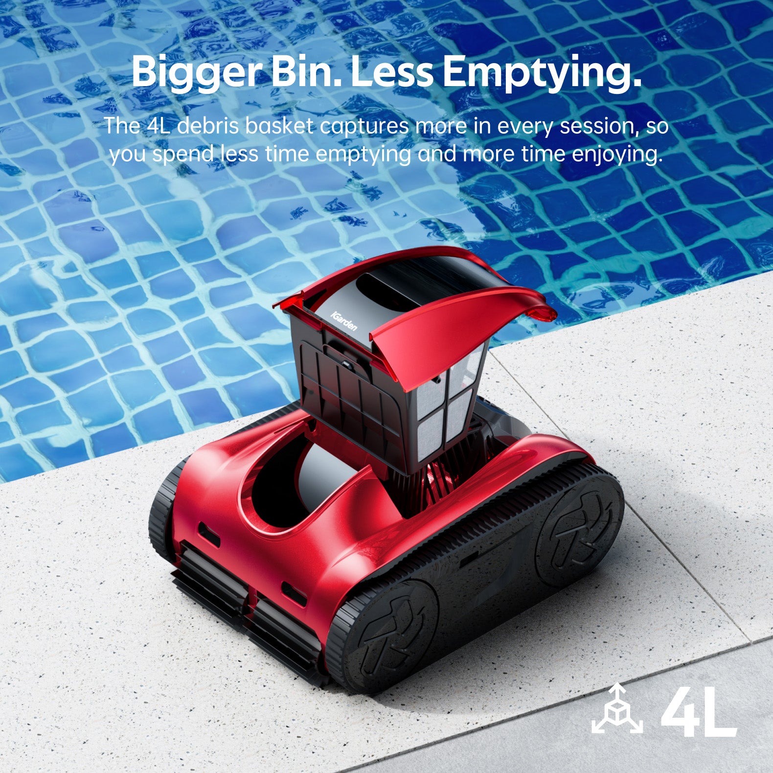 Runs for extended time—clean more, empty less, with a large debris basket.