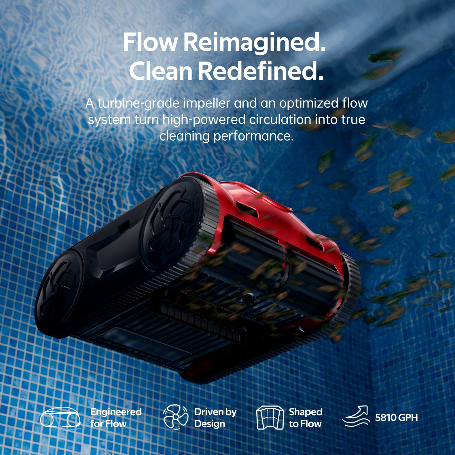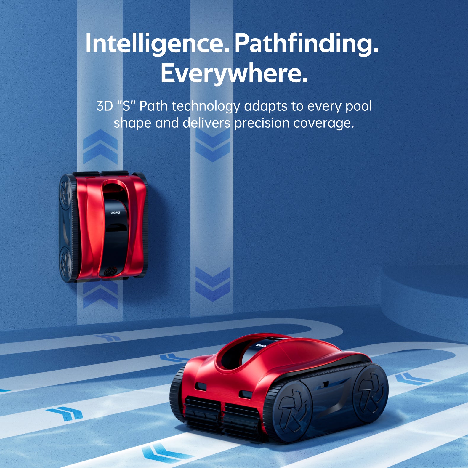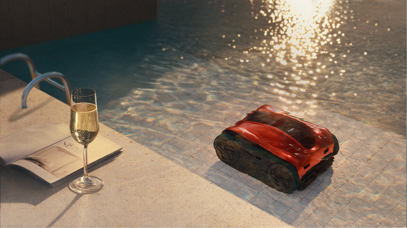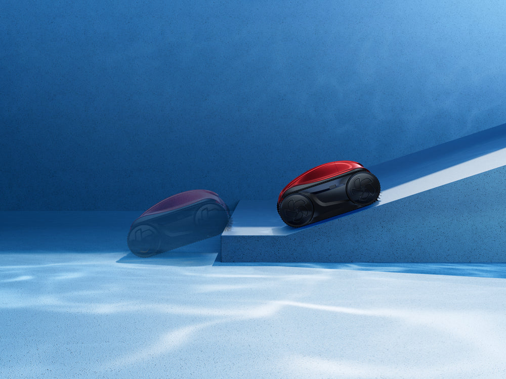 The pool cleaning robot is built to clean up every inch, floor to waterline.